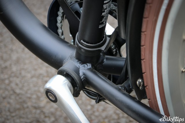 The Elops has been part of B’Twin’s city range for a while, with bikes starting at just £199 for the Elops 500. The electric bikes use the same basic frame design and add electrical assistance; the steel-framed £649 Elops 500e and this bike use a hub motor setup (the cheaper bike uses a 24V system, with a 36V motor used here) and the £1,799 Elops 940e uses the more powerful Shimano STEPS mid motor system.