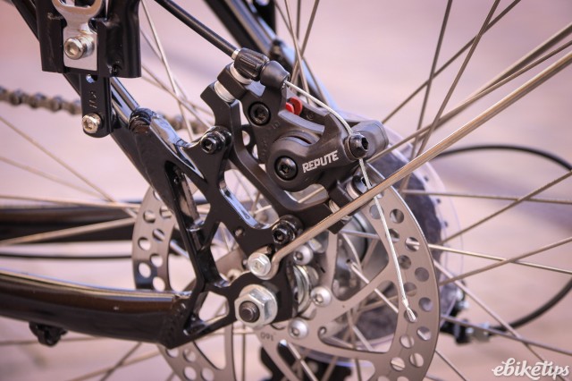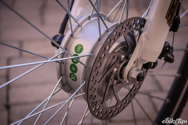 So the motor system, for the money, is good. Also good are the chunky alloy frame and the cable discs: they took a bit of bedding in and they certainly not as good as hydraulic ones, but they work pretty well, in all kinds of weather, so for £649 they're good spec. The mudguards, though flimsy, do a decent job of keeping you dry, though the front one could do with being longer. It's good to get a rack included at this price, too. Cyclotricity will sell you a set of panniers for it (£24.99) but I haven't seen them so couldn't specifically recommend them.