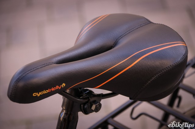 The ride of the Revolver is decent enough, those issues notwithstanding. It's a bike that's happy to cruise along on the flat and the riding position is very good for city trips. There's enough air in the tyres to take the sting out of the poor UK road surfaces, although bigger rubber wouldn't hurt one bit. The riser bars give a good position and the grips are comfy. The saddle isn't bad either; you're unlikely to be doing much more than a few miles at a time on a bike like this, and it's fine for that. Range-wise I was getting three commutes out this bike before starting to get a bit itchy about the state of the battery. That's about 25km, so at the lower end of Cyclotricity's estimates, but I'm a big rider and the commute is up and down a big old hill. On flatter terrain, where you're spending less time in the high assistance modes, you'll probably manage double that. Given the likely use, the range is fine.
