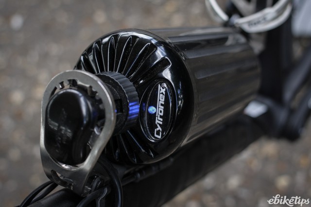 Obviously if you’re buying the C1 system to retrofit it to a bike you already have there’ll be some spanner work involved. I can’t offer too much insight into how hard that would be, as ours came fully assembled, but there’s nothing that looks particularly scary. The hub motor is a pretty standard affair; you need to make sure you get some of the washers in the right place but it’s not complicated. The bottle battery fits to a carrier that simply attaches using the bike’s bottle bosses, and the chainstay-mounted rear sensor just requires a couple of zip ties and some fiddling to get it in the right place. There’s a bit of tidying up to do after that, but the system is very neat and not particularly obtrusive; Cytronex reckons it's about a half hour's work to fit. On a club run with about 20 riders, only around half of them noticed that it wasn’t a standard bike.