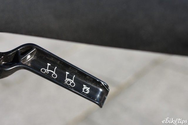 Folding and carrying is just as important as riding on a ‘multi-modal’ folder and the titanium lightweight Brompton fitted with the lightweight Cytronex kit is undoubtedly the best e-bike train commuter we’ve tried. We didn’t even bother removing the battery as the 11.65kg package was easy to carry by your side in all situations. The legendarily compact and secure fold of the Brompton adds greatly to this ease of portability too. If you do struggle with this weight, it’s an easy matter to remove the battery, slip it into a bag and you have a folding package of around 10.1kg. It’s pretty easy to roll it along platforms too by partly extending the seatpost.