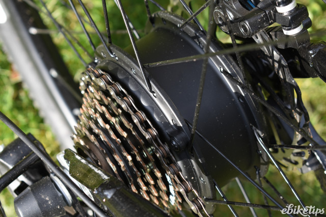 As you might expect, the spec is budget but highly functional. The geared rear hub motor uses cadence sensing only (no throttle), rather than the pricier and more refined torque sensing power system, but it works well and picks up pretty soon after pedalling (unlike some other budget systems which can take several seconds to ‘realise’ that you are pedaling and want some motor power).