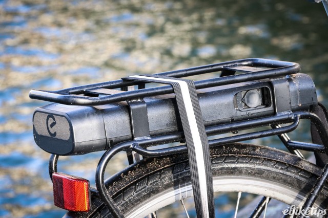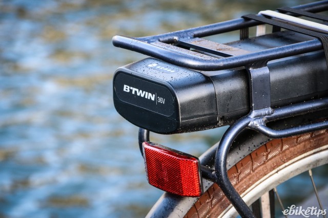 The battery sits in a custom steel rack that's part of the frame structure rather than being bolted on. At 210Wh the battery isn't huge, but you wouldn't expect it to be on a bike as cheap as this, and you'll still get a useful range out of the elops 500, especially if you're judicious with the use of the higher power modes when you don't need them. B'Twin suggest 30-45km is achievable, which it probably is on the flat. You'll need to be a bit more on the ball with your charging strategy than with a higher-capacity bike but it should be fine for most people's commuting or shopping trips.