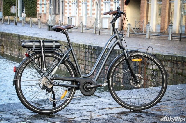 Decathlon have been making e-bikes for a while but the 2017 range is a bit of a reboot: the bike models in the city range have been designed from the ground up to work as either standard, non-assisted bikes or as electric bikes. There are three new e-bikes for this year. At the budget end is the elops 500e, which is a steel-framed city machine with a 24V hub motor system for just £599. The next bike up is the elops 900e (£949), which gets an alloy frame, cable discs, 36V hub motor system, LCD control and a suspension fork. The top-of-the range elops 940e (£1,699) has the Shimano STEPS mid motor system, a 10-speed Shimano Deore drivetrain and hydraulic discs. We took to the slightly damp a drizzly streets of Lille to give the bikes the once over.