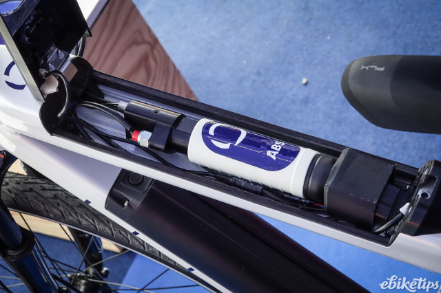 Blubrake is claiming its system is the world’s first integrated bike ABS. Given that Bosch is already out there, the key word here is ‘integrated’. This production version of its ABS system is on a bike from Swedish outfit Crescent, the ELLIE 7-VXL. According to Blubrake The ELLIE’s ABS system is “completely invisible as it is integrated into the frame itself”. Told you it was all about the integration.