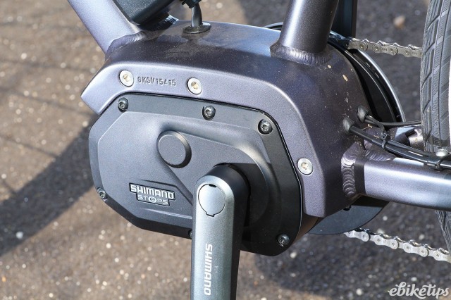 The Shimano STePS system gives you a mid-motor 250W power unit and three assistance modes. The battery is downtube-mounted and swings out from its mount for easy removal and charging. The Strada E we tried had the new, larger display but hadn’t been updated to include the new automatic mode that shifts gear for you based on your cadence and how hard you’re working. Production models should have that, though.
