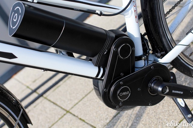 We’re at the Eurobike Show this week and before we’d even got in the door we spotted the chaps from Relo, so we had a quick ride around on their system. The Relo drive can be fitted to pretty much any bike with a standard bottom bracket. There’s a gearbox with a drive that fits to the non-drive-side axle, and a clever concertina gearbox that means you’ve got a bit of leeway with the fitting of the system to the down tube.