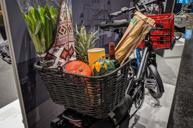 The HSD is in the middle of the two. Some people don’t need the cargo capacity of the GSD, and some people don’t need a bike that folds. The HSD is, because of its 20” wheels, shorter than a standard 700c-wheeled city bike, but the shortish cockpit and extended tail apes the GSD, just not to the same extent. The rear rack isn’t an integral part of the frame but it’s still rated for a 60kg load, so a child seat and some standard panniers (both of which will fit at the same time) won’t trouble the limit. You could even give bigger kids a lift; there’s no passenger kit yet but one is in development. You can add a flatbed rack at the back that holds a standard crate, and another one on the front bolted to the mount on the head tube. There are a bunch of other city bags and baskets available too. so there’s still masses of load space and versatility.
