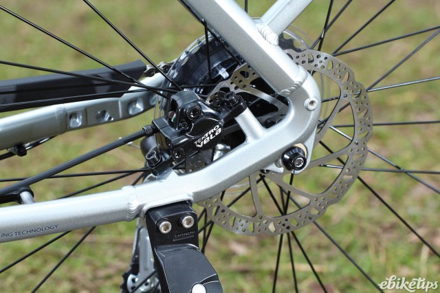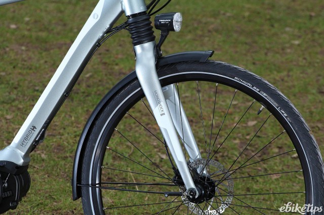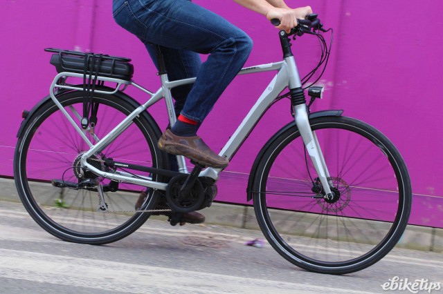 It's a pleasant bike to ride, too. The upright position makes it easier to take in your surroundings and the bike is capable of handling rougher terrain than you might imagine. I took the Prime E +3 on a 10km off-road jaunt on fire roads and some bumpier tracks, and it performed admirably. The monoshock front fork gives decent damping at the front but the design means it's still nice and stiff and tracks well. The Tektro hydraulic disc brakes are powerful and easy to use, and gear shifting from the Shimano Altus/Alivio drivetrain was problem-free. On the road the steering is relaxed and the bike is easy to handle.
