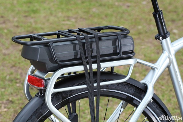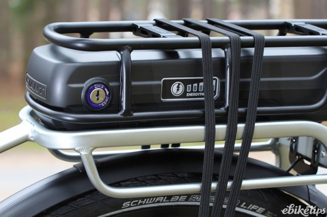 The battery is Giant-branded and uses high-quality Samsung cells. The capacity is lower than many systems at 300Wh, but Giant claim the "cutting edge EnergyPak® battery technology, results in a 25% higher energy density, 25% more range than most batteries from competitors of the same size and weight". It's located in the rear rack and Giant use a RackTime standard rack which means that there's plenty of aftermarket accessories available for carrying duties. This bike isn't set up for heavy-duty carrying out of the box as it only has a single kickstand. There's no frame lock on the bike either, which is a useful addition if you're nipping into the shops.