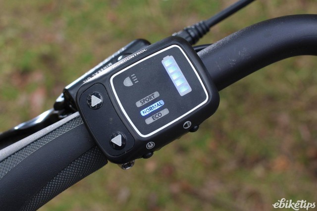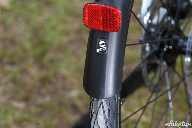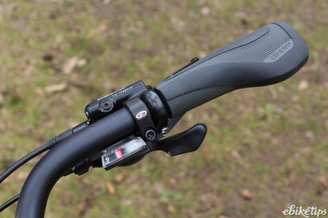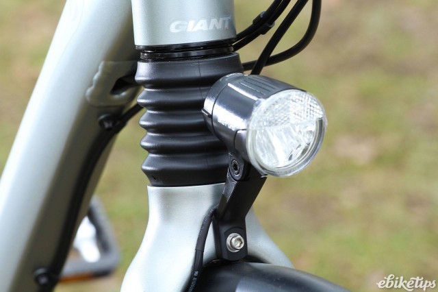 Giant are one of a minority of manufacturers to use Yamaha's SyncDrive middle motor. Certainly you see less of them than the Bosch (and to a lesser extent, Panasonic) bottom bracket motors. Just the motor comes from Yamaha; Giant have developed their own control hardware and software for their bikes, which they call Giant RideControl, and this bike has a simple LED display that shows the battery level, the power mode and whether the integrated lights are on, or off. If you turn the lights on then the display is dimmed, which would be a good idea if you never run the lights during the day. I tend to use them a lot on bigger roads in the daytime, and the dimmed display is difficult to read in daylight. After dark the lights are more to be seen than to see by, although the front is just about powerful enough for unlit roads if you're careful.