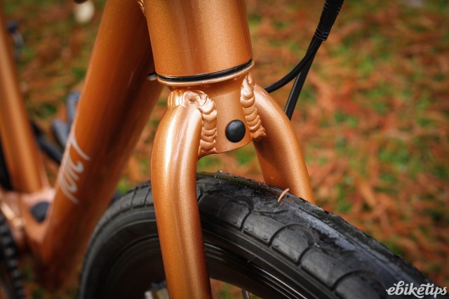 The ride is best described as firm. There’s no suspension of any kind save for the tyres, and those are a bit stiff and possibly better swapped for something a bit more supple. The reasonably narrow bar is stiff too and the padding on the grips is pretty minimal; I’d like to see the bike get some more cushioned ergonomic grips as standard. The saddle I found reasonably comfortable but again, at the rear you’re not getting any suspension, or much help from the tyres. It’s a direct-feeling bike, but the overall comfort level could be improved with a few pretty easy component swaps. Handling is very good, with Ticket feeling very nimble around town. The narrow bars and lively steering mean it’s fun in traffic and you can squeeze it through gaps you wouldn’t attempt on a bigger, wider city bike.