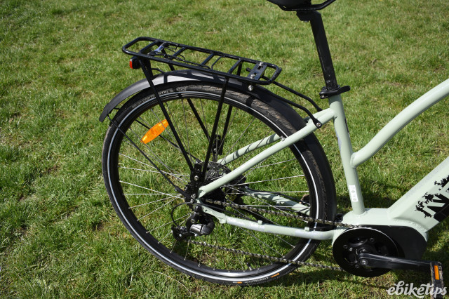 The frame-integrated battery drops out of the bottom of the downtube with a keylock - though this design tends to be fiddlier to operate than batteries that exit on the top of the downtube. Easiest of all are frame mounted batteries and though these are becoming unfashionable, I've always found them the most hassle-free design to get on and off the bike. The frame itself is of a nice step-through design, which should make it pretty easy for most riders to get on and off.
