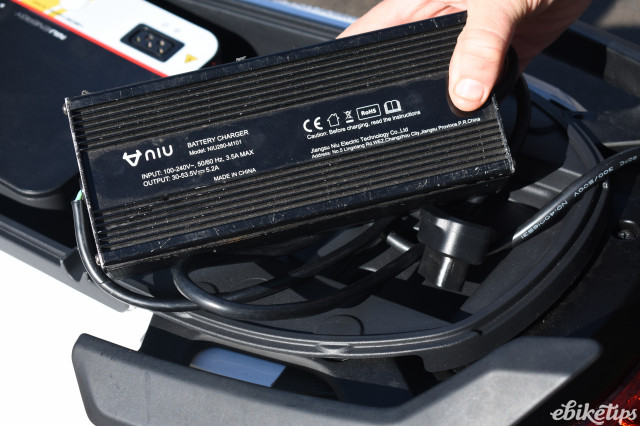 Estimated range is pretty good compared to other e-mopeds we've tested, as you might expect as the MQi+ Sport has the biggest battery ebiketips has yet tested at 2kWh. It took my 76kg frame around 38 miles over hilly country but in fairly mild conditions. Niu claims 60 miles in ideal conditions. Whilst it would certainly be easy for a lighter rider in easier terrain to get well in excess of 40 miles, 60 miles seems very unlikely in any real world conditions.