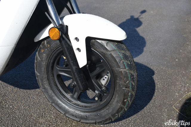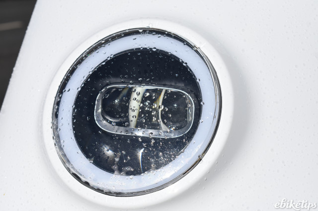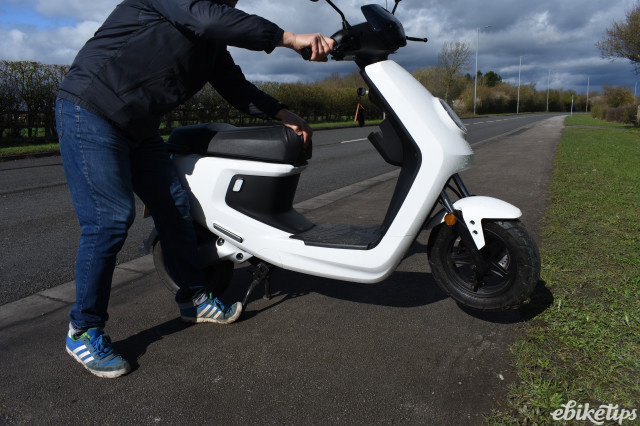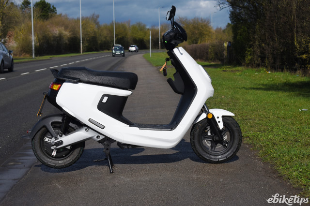 The lighting on the MQi+ Sport is outstanding with very visible daytime running lights and a full beam option at the front and highly visible rear lights, brake lights and indicators. There are even small sidelights in the middle of the moped, while the bright white plastic alone is a great visibility feature.