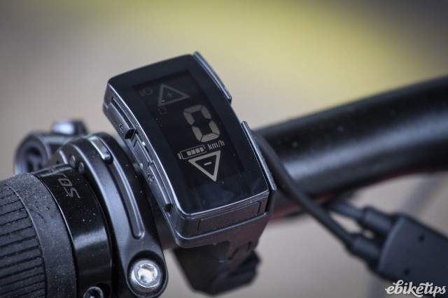 The Brose display shows speed, assistance level and the battery state, and it also functions as a rocker switch to move between the three power modes. The two buttons on the side access the walk-assist mode and turn on the lights; the e-Silence Evo has integrated Supernova lighting at the front and the rear which is very good. The front light is integrated into the stem, and easy to adjust with a good beam for road riding.