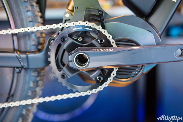 Unlike the Bosch motor, which uses a small drive sprocket, the STePS motor features a 34T or 38T sprocket (with optional chain guard). There are hollow and solid crank arms available, with a premium for the lighter hollow units.