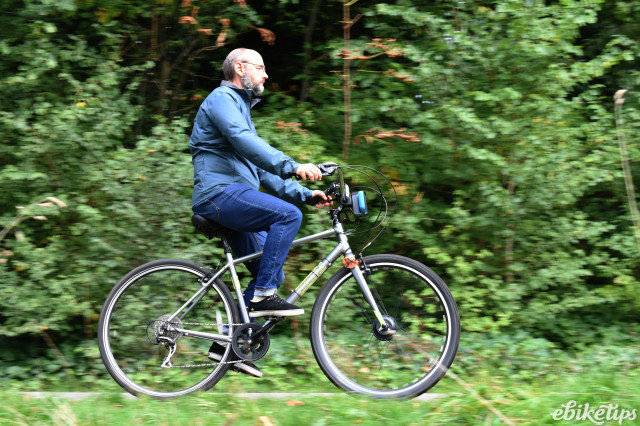 The 2m42s posted on our standard test course of almost a mile of constant climb was right up there with the best and shows it maintained the top assisted speed of around 16mph all the way up, with no drop off. The test rider didn't feel at all out of breath either. Strangely, this was considerably faster than the previous kit, though that was fitted to a much heavier bike and there was a bit more headwind, which perhaps explains the discrepancy. The motor struggled more than some on our ultra steep test but that's par for the course with small hub motors.