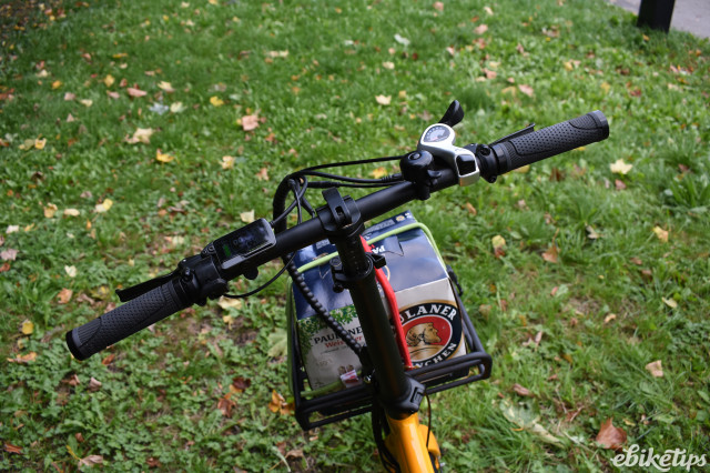 There is an optional throttle attachment that works well in town traffic in particular and especially when fully loaded when you need a quick, stable take-off from a standing start. This gives you instant full power as and when needed, even if you are in one of the lower power settings. This appeared to work as a twist and go (you don't need to be pedalling for it to work) so it's technically not a legally compliant e-bike if you choose to fit the throttle, even though we found it fantastically useful.