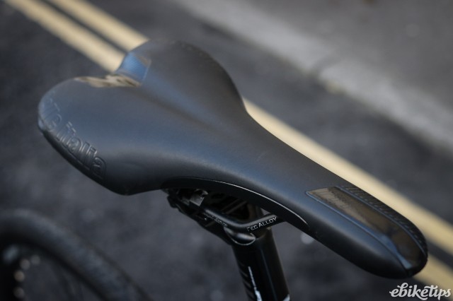 The charger connects to a charge port just above the bottom bracket, where the seat and downtube meet. The manual says that the bike really doesn’t like water in the charging port. I’d have liked to have seen the charging port maybe not pointing up vertically from the bottom bracket, which I reckon is the perfect place for water and other detritus to collect. There is a cap that supposedly seals the charging port, but as the charging port is inset into the frame I have a suspicion that it might not be able to do the job forever in real-world conditions. Having said that, I didn’t have any problems in the month or so I had the bike, and I certainly didn’t hold back in getting it dirty or wet.