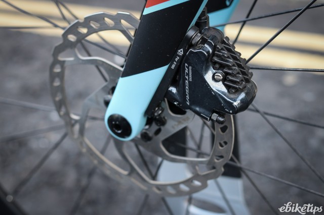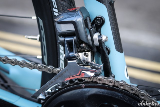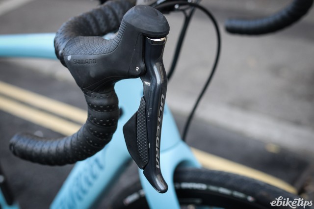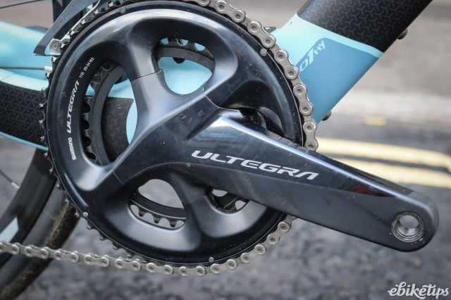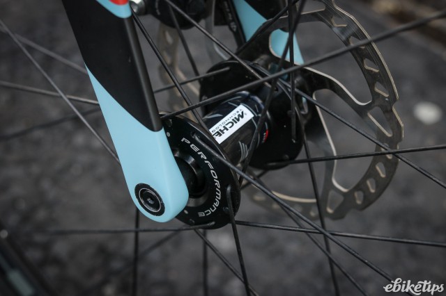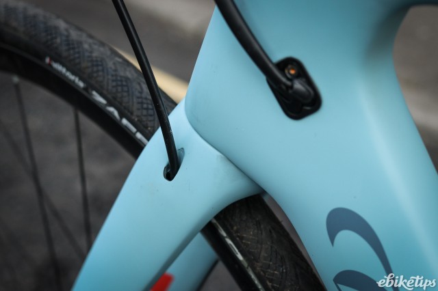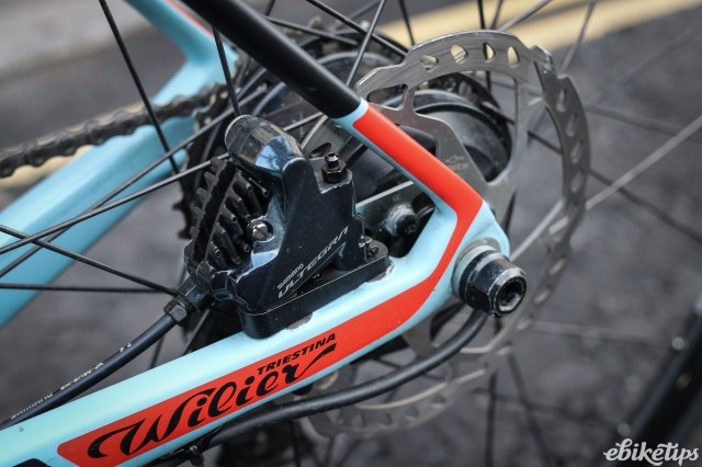 The Cento1 Hybrid is available in the UK in two builds. For £4,199 you get a Shimano Ultegra mechanical transmission, and the bike I tested, with Ultegra Di2 gearing, is £5,199. This is a high quality build, and the Shimano Ultegra Di2 electronic gearing was faultless as ever. Shimano's hydraulic discs are confidence-inspiring in all weathers and on all surfaces. The Miche wheels are dependable if a little on the heavy side. Obviously with a rear hub motor, swapping out the wheels isn’t an easy job.